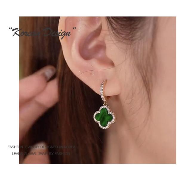 フープピアス レディース 18金 仕上げ 金属アレルギー対応 四つ葉 CZ ダイヤモンド クローバー 揺れる 大人 可愛い おしゃれ 上品
