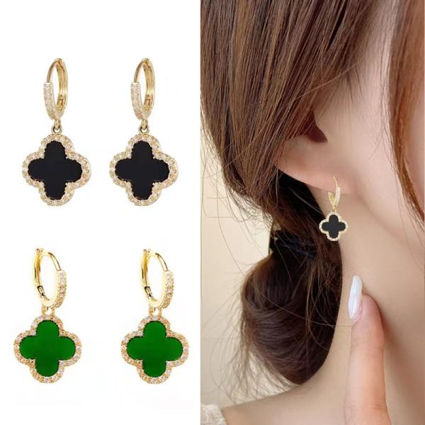 フープピアス レディース 18金 仕上げ 金属アレルギー対応 四つ葉 CZ ダイヤモンド クローバー 揺れる 大人 可愛い おしゃれ 上品