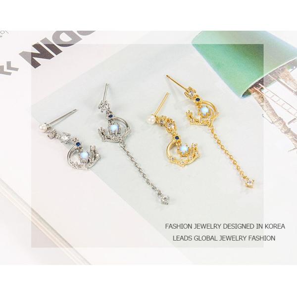 ピアス 18金 仕上げ レディース 揺れる 月星 モチーフ アシンメトリー CZダイヤモンド アレルギー対応 母の日 爆買