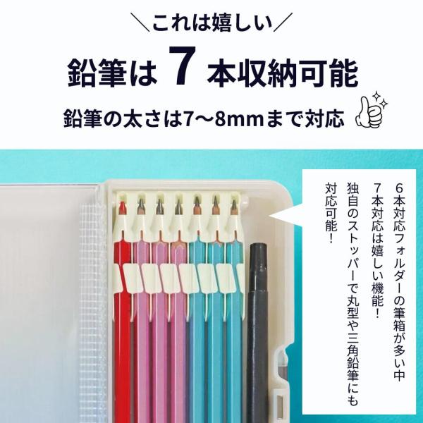 コンパクトなのに【鉛筆7本】【各種定規】【消しゴム】【名前ペン】【鉛筆削り】が収納できます!