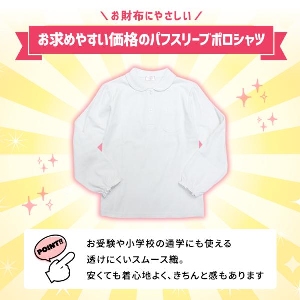 ポロシャツ スムース 長袖 白 小学生 女子 パフスリーブ 制服 丸衿 入学式 卒業式 お受験 幼稚園 お姫様 スクールポロシャツ 子供用 女の子 かわいい 爆買