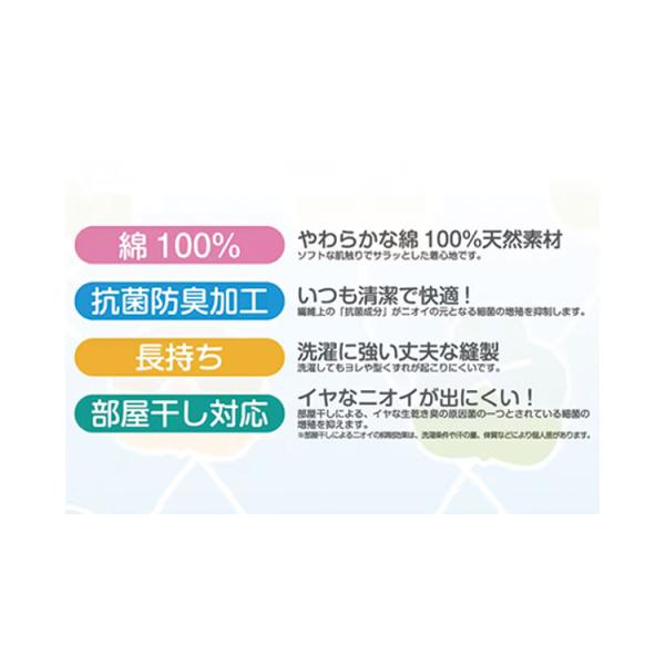 肌に優しい綿100%。やわらかい肌触りでサラッとした着心地です。
