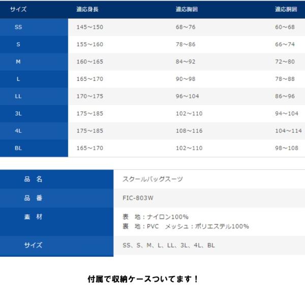 【リュック&ヘルメット対応】FIC-803W スクールレインスーツ カッパ 通学用 自転車用 中学生 高校生 学校用 雨具 レインスーツ