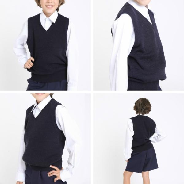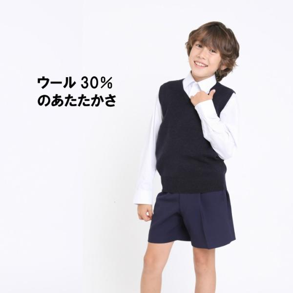 【ウール30%】小学生 ベスト スクール ポロシャツ ニット 紺 通学 子供用 キッズ 入学 冠婚葬祭 フォーマル 法事 祭典 ネイビー