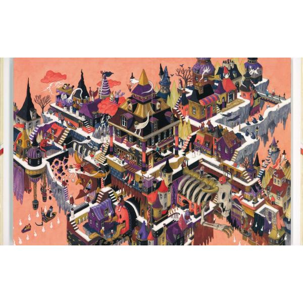 表紙をめくると、背中を向け、足を踏ん張って立つ子ども。小さな一歩を踏み出そうと決心した、その行く手には、まっ白な道が、どこまでものび、その先には、ふしぎな町の数々が、待ち受けている。彼、彼女と一緒に道をたどるようにして、ページをめくってみてください。次々に現れる、ため息のでるような色彩と繊細なタッチで描かれた町のすみずみに目をこらせば、秘められたたくさんの、そして自分だけの物語が見つかるかもしれません。
