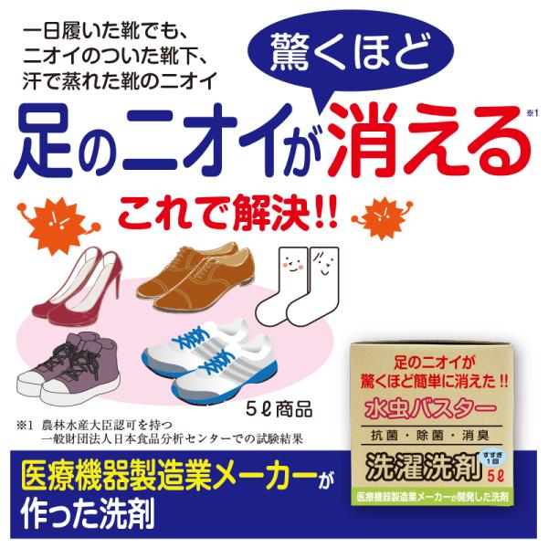 【1/5より順次発送】液体洗剤 5Lパック 段ボールコルクタイプ 足の臭い 洗剤 水虫バスター 夏の足の臭いを消してしまおう! 消臭 水虫