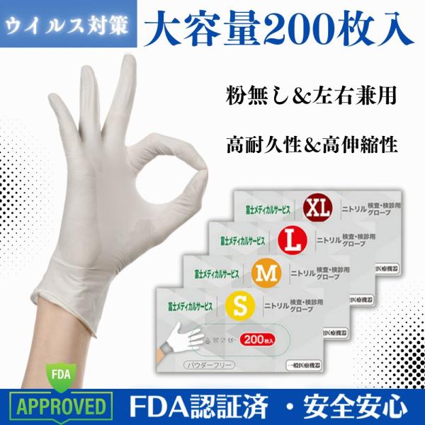 【12時までのご注文で当日発送】使い捨てニトリル手袋 大学病院採用モデル ニトリル手袋 ホワイト 200枚 検査・検診用 使い捨て手袋 予防対策