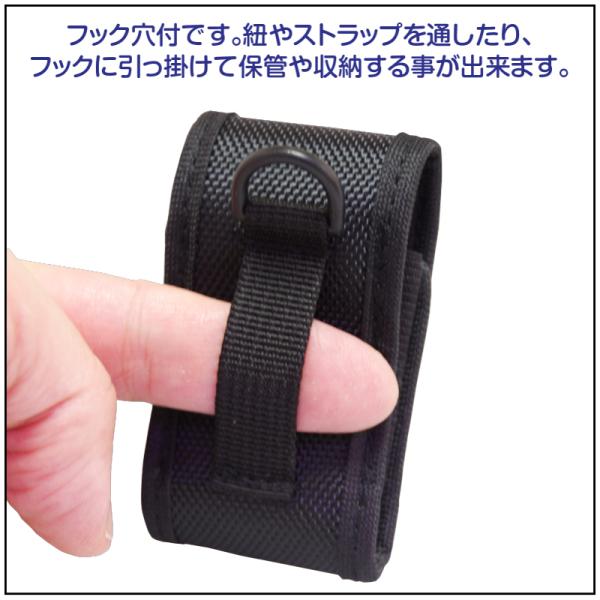 また、ベルトに通したり、フックにカラビナを付けてバッグに取り付ける事も可能です。