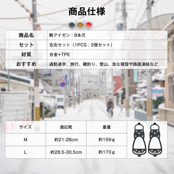 アイゼン スノースパイク 雪 滑り止め 靴 滑りとめ 雪 8本爪 かんたん装着 靴底 メンズ レディース キッズ 脱着 簡単装着 安全 雪道 凍結 スノー ブーツ 雪対策