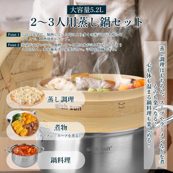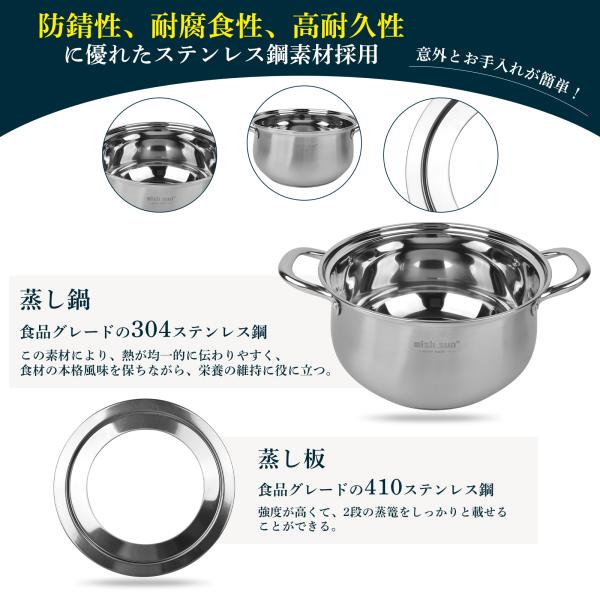 ステンレス 卓上鍋 蒸し器セット 20cm 24cm IH・ガス火対応 多用途鍋 2〜4人用 ステンレス鍋 蓋付き せいろ 蒸し料理 湯豆腐 調理鍋 蒸し皿 おしゃれ 洗いやすい