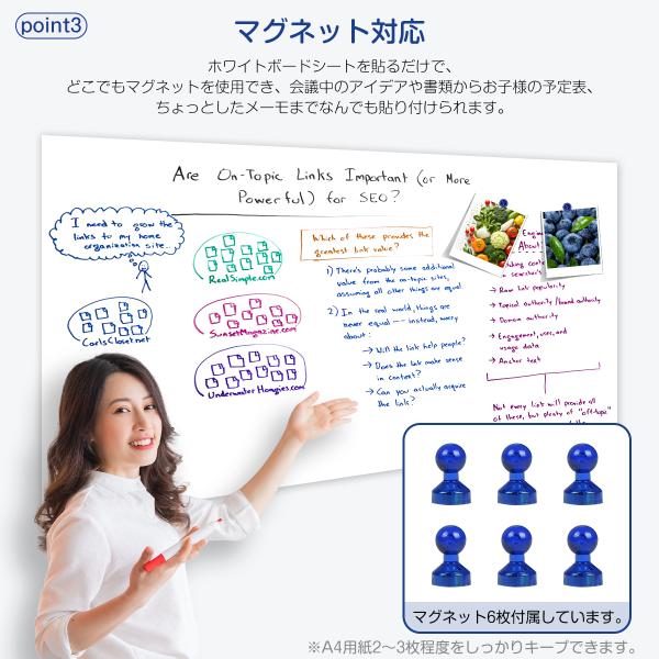 壁に貼るだけで簡単にホワイトボードとして使える便利なホワイトボードシートです。
