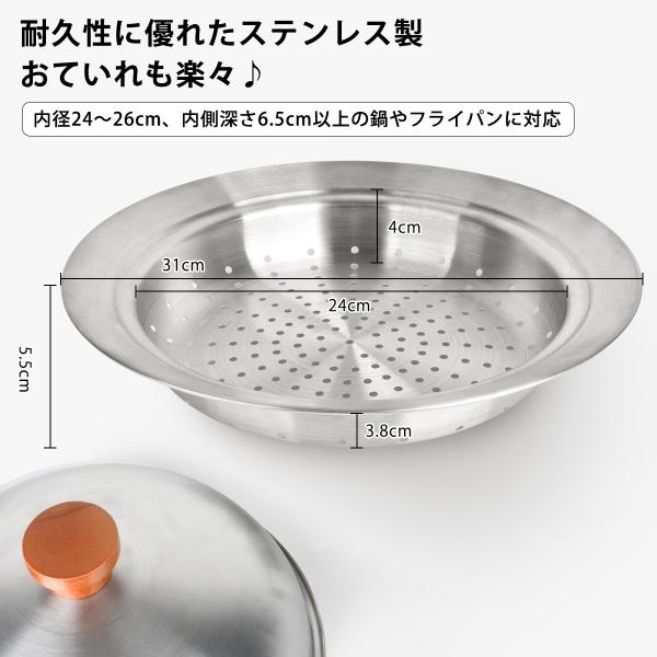 蒸しプレート 24〜26cmのフライパン対応 ドーム型 ステンレス 蒸し器 ふた付き 鍋用 調理用品 蒸し鍋 蒸しプレート 調理器具 キッチン用品 蒸し料理 スチーマー