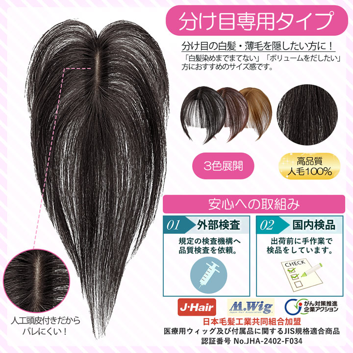 【分け目専用タイプ/人工頭皮付き】(ピン無し 部分ウィッグ)