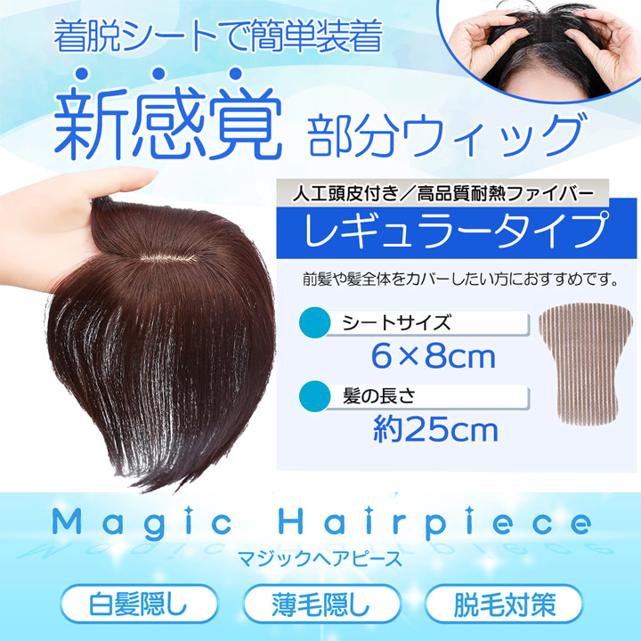 【人工頭皮付き】 マジックヘアピース レギュラータイプ 前髪ウィッグ 部分ウィッグ ヘアピース つむじウィッグ 白髪隠し ウィッグ エクステ