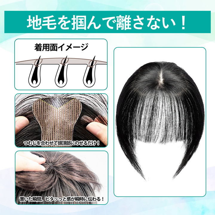 ピン無し 部分ウィッグ 人毛 前髪ウィッグ ウィッグ 白髪隠し ボリュームアップ 【人毛100% マジックヘアピース 分け目タイプ】