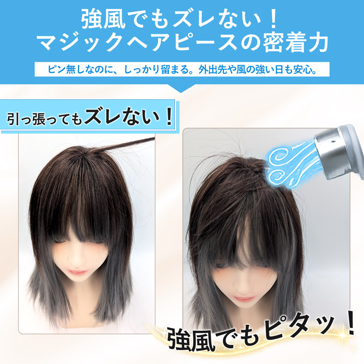 ピン無し 部分ウィッグ 前髪ウィッグ ウィッグ 白髪隠し ボリュームアップ 【マジックヘアピース レギュラータイプ 高品質耐熱ファイバー】