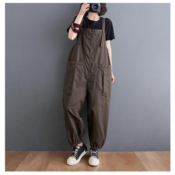 キーワード:オーバーオール オールインワン レディース サロペット パンツ ズボン ボトムス サルエルパンツ バルーンパンツ ロンパース 大きいサイズ ロング丈 大きいポケット 絞り裾 春 夏 秋 薄手 無地 カジュアル ゆったり ビッグ ビッグシルエット