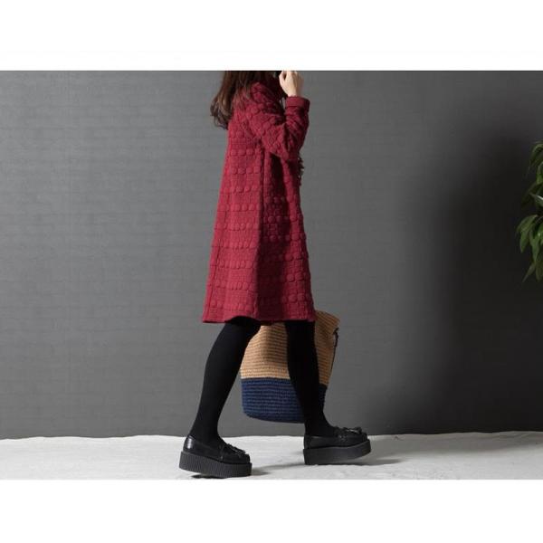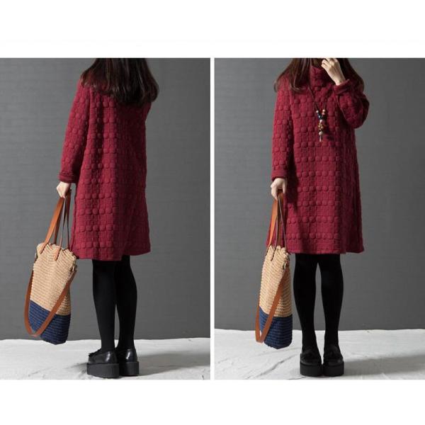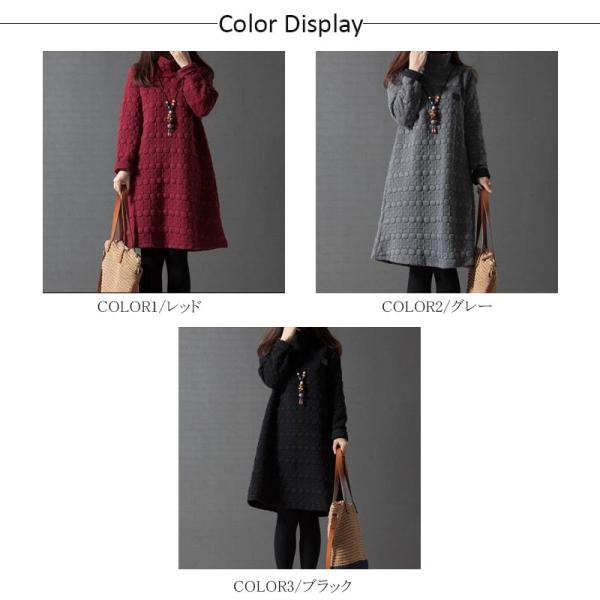 ワンピース レディース チュニック 膝丈 長袖 ハイネック 厚手 体型カバー Aライン 大きいサイズ きれいめ 着痩せ エンポス加工 シンプル 30代 40代 秋冬