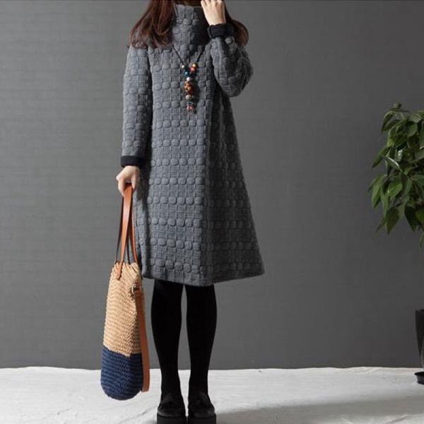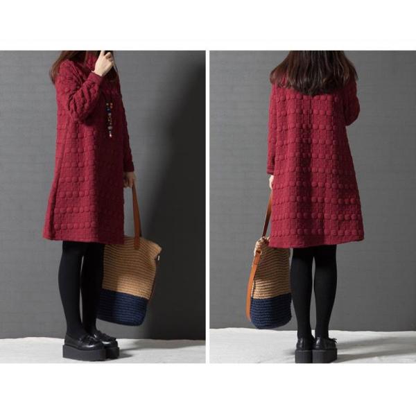 この冬は一着で決める!ハイネック厚手長袖ワンピース