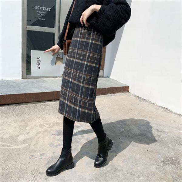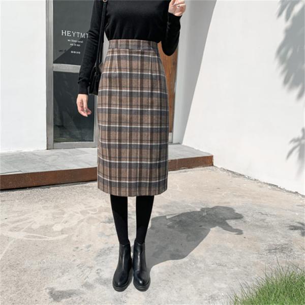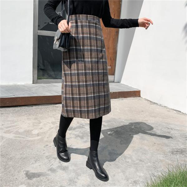 キーワード:ボトムス スカート ロング丈 ロングスカート チェック柄 レディース ロンスカ ラシャスカート 膝下丈 ラシャ ハイウエスト チェック 柄 通勤 着痩せ ペンシルスカート ファッション シンプル カジュアル きれいめ 20代 30代 40代