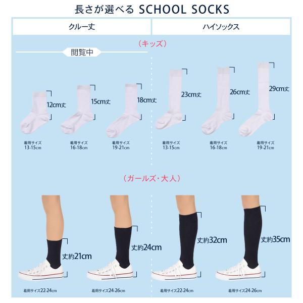 サイズと丈の長さが豊富なスクールソックスクルー丈5足組