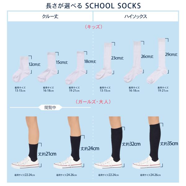 サイズと丈の長さが豊富なスクールソックスクルー丈5足組