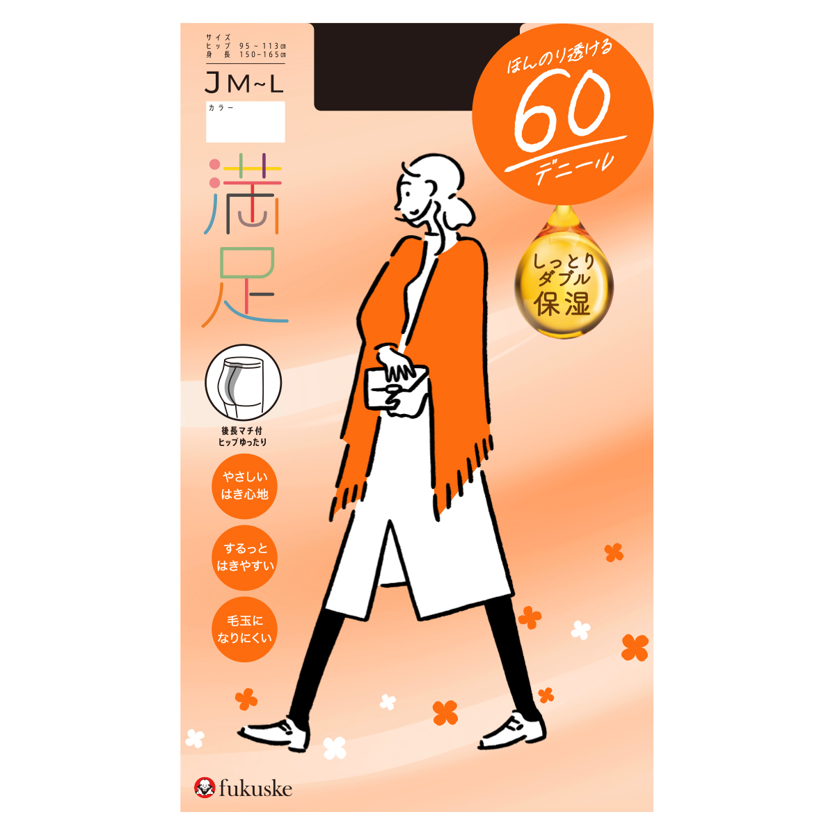 タイツ 黒 黒タイツ 肌色 パンスト 60デニール レディース 福助 公式 満足 無地 毛玉になりにくい静電防止 つま先補強 マチ付 JM-L 740-7111 フクスケ fukuske