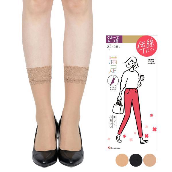 満足(マンゾク) 靴下 クルー丈 無地 口ゴムレース付き ゾッキ ノンラン設計 つま先補強 (040-1121)福助 fukuske ふくすけ 爆買