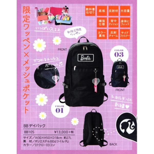 スクールバッグ Barbie バービースクールディパック BB105 容量約27L 女子用 カラー/01クロ・03コン 人気商品