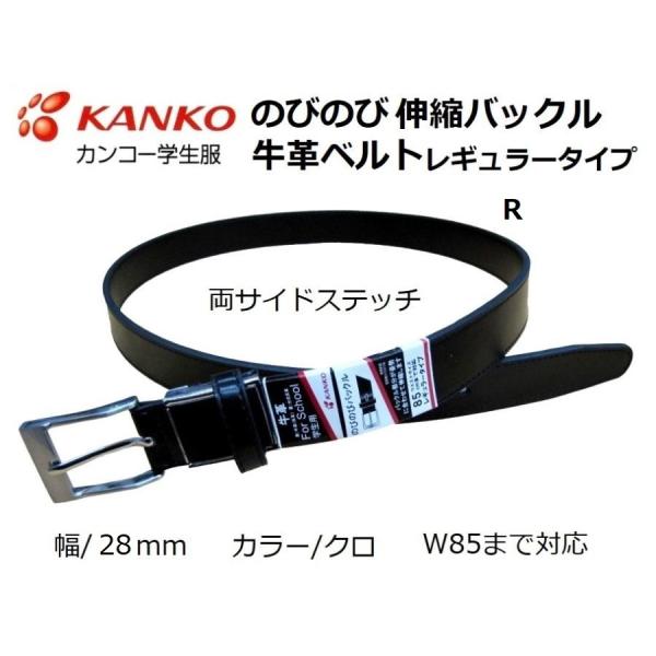 カンコー学生服 のびのび伸縮バックル牛革学生ベルト KB3200 レギュラータイプ R 幅28m/m カラー/クロ