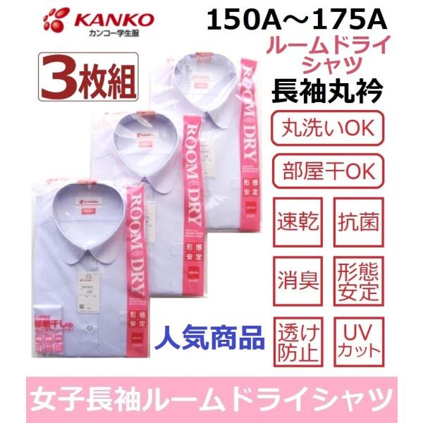 カンコー女子長袖丸衿スクールブラウス (ルームドライシャツ) KN5831 3枚組 サイズ/(A体)150A〜175A
