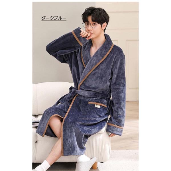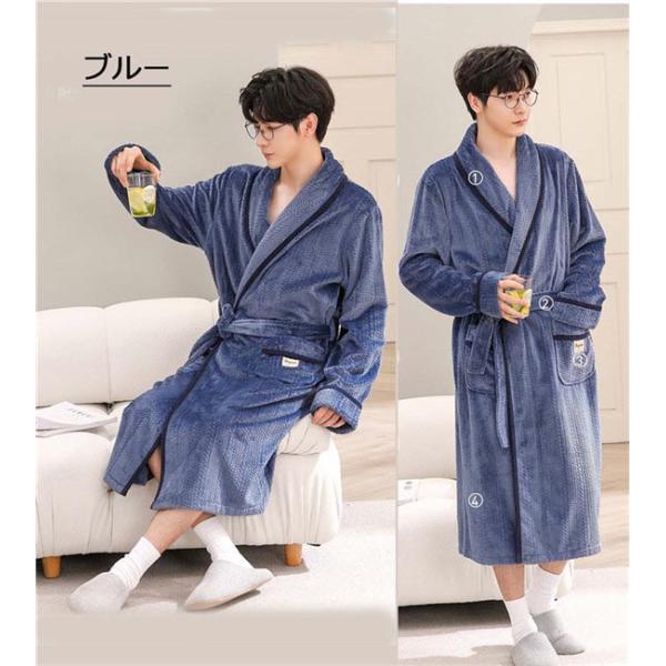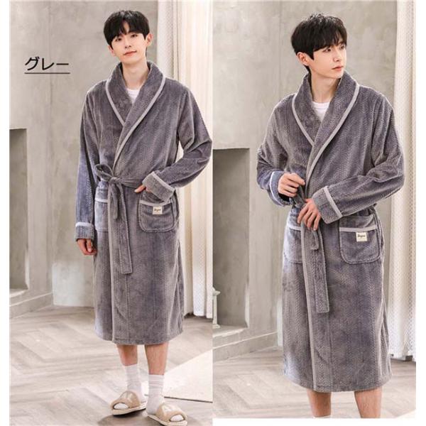 ルームウェア もこもこ バスローブ メンズ パジャマ 冬 長袖 ナイトガウン 着る毛布 前開き パジャマ L XL 2XL 3XL グレー ブルー アイボリー 裏起毛 部屋着 プレゼント 暖かい ギフト バレンタイン お風呂上りdh156c0c0x0