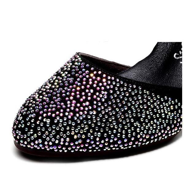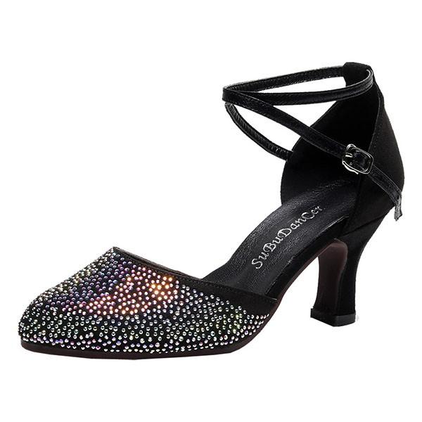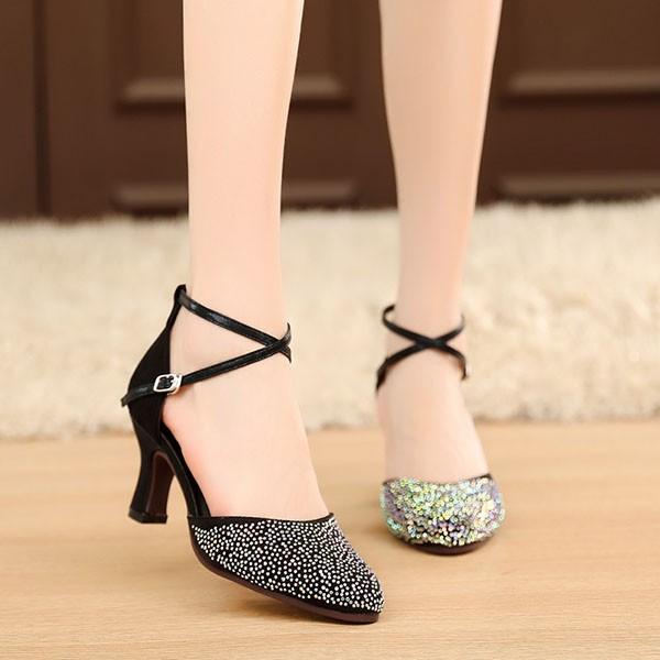 ダンスシューズ 女性 レディース 社交ダンスシューズ モダン ラテン 黒 キラキラ ストーン パフォーマンス チャチャ ルンバ クロスストラップ つま先あり ブラック シルバー 室外 大きいサイズ ダンスパンプス 練習用 発表会 イベント 美脚 舞台 ヒール5.5/7センチ dm063x1x1x0