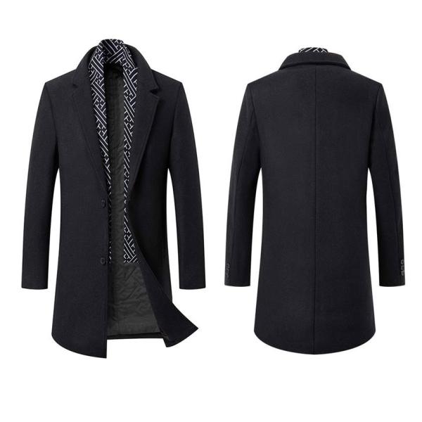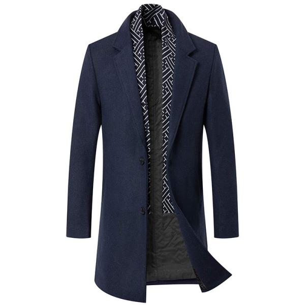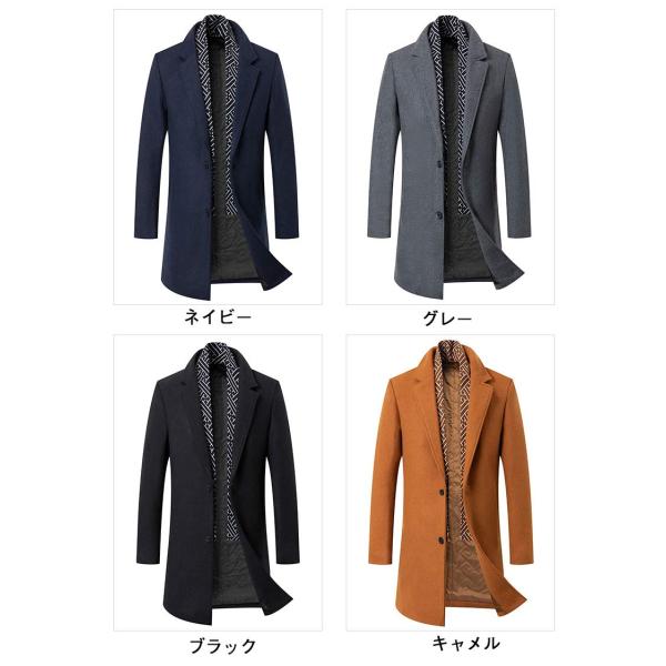 コート メンズ ビジネスコートマフラー付き ウール混紡 チェスターコート中綿 ロングコート グレー ブラック ネイビー キャメル 30代 50代 ステンカラーコート 40代 秋冬 M/L/LL/3L/4L/5L