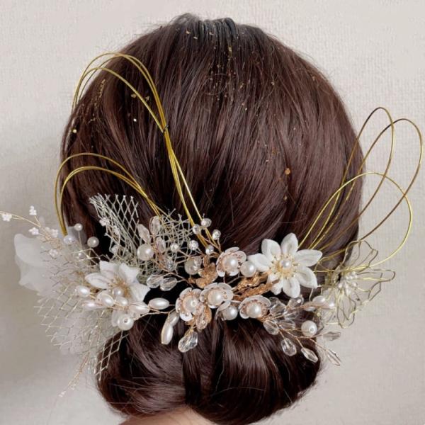 髪飾り かんざし パール 結婚式 アクセサリー ヘアアクセサリー 髪留め 着物 成人式 コーム 卒業式 留袖 黒留袖 和装 花嫁 浴衣 上品 ダイヤ ビジュ