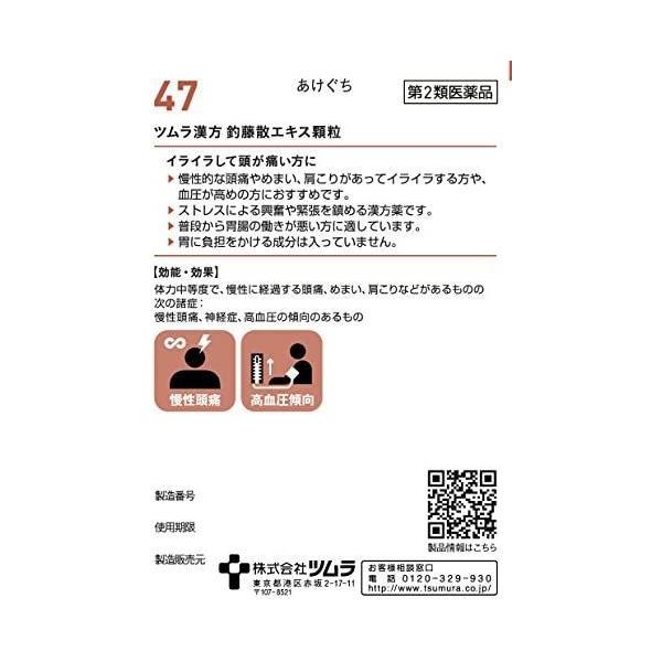 【第2類医薬品】 ツムラ漢方 【47・小】 釣藤散エキス顆粒 20包(10日分) ちょうとうさん チョウトウサン 高血圧 頭痛 (4987138390479) 【定形外郵便にて発送】