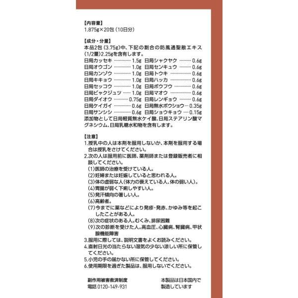 【第2類医薬品】 ツムラ漢方 【62・小】 防風通聖散エキス顆粒 20包(10日分) ぼうふうつうしょうさん 高血圧 便秘 肥満 (4987138390622)【定形外郵便にて発送】