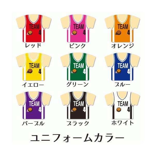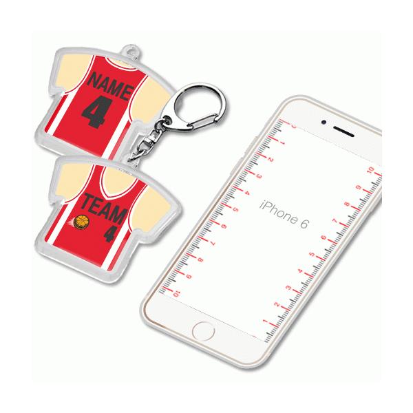 バスケのユニフォームをモチーフにしたキーホルダーです。名入れも無料で実施します。卒業記念や参加賞などに大人気です。
