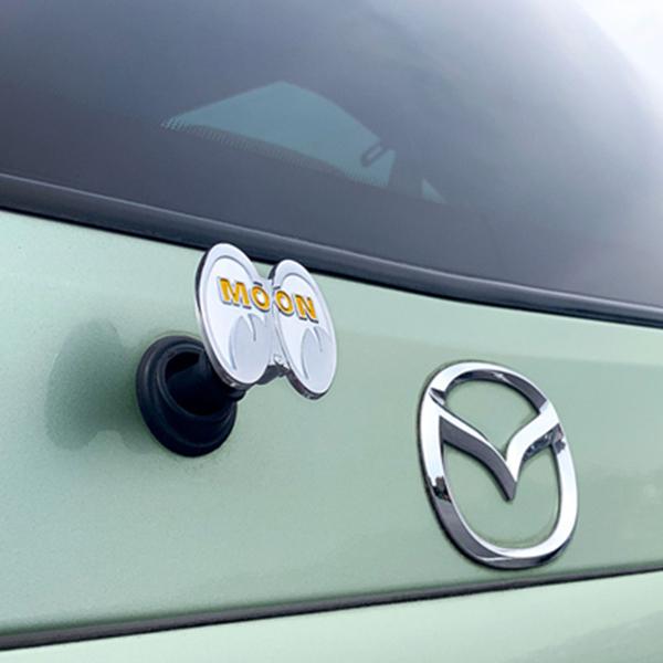 リアワイパーを取り外したあとの味気ないピボット シャフトに取り付けるだけで、リアビューが MOON 仕様になります!