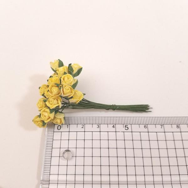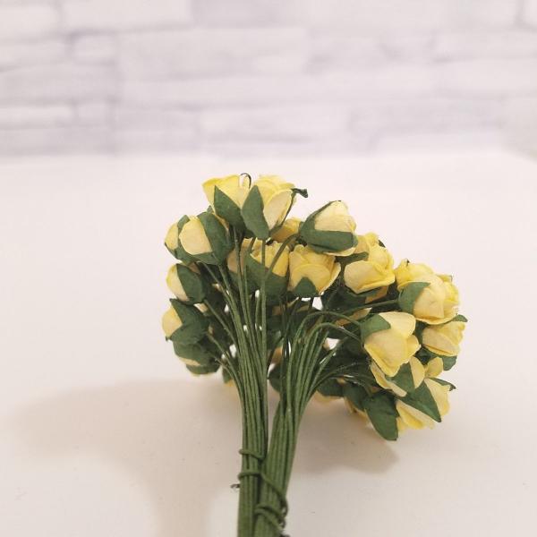 造花[ミニ・ペーパーフラワー バラ(黄色 #145) 直径約15mm 50本] ハンドメイド リース アートフラワー コサージュ