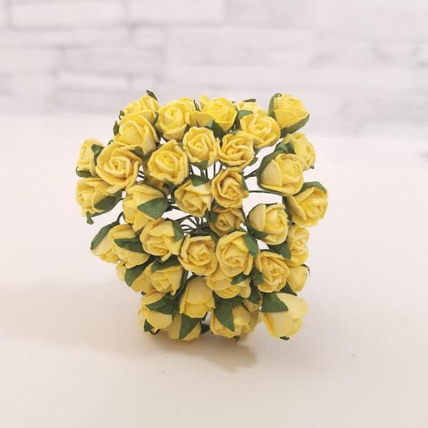 造花[ミニ・ペーパーフラワー バラ(黄色 #145) 直径約15mm 50本] ハンドメイド リース アートフラワー コサージュ