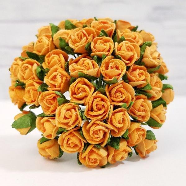 造花[ミニ・ペーパーフラワー バラ(オレンジ #133) 直径約5-8mm 50本] 手作り ハンドメイド リース アートフラワー