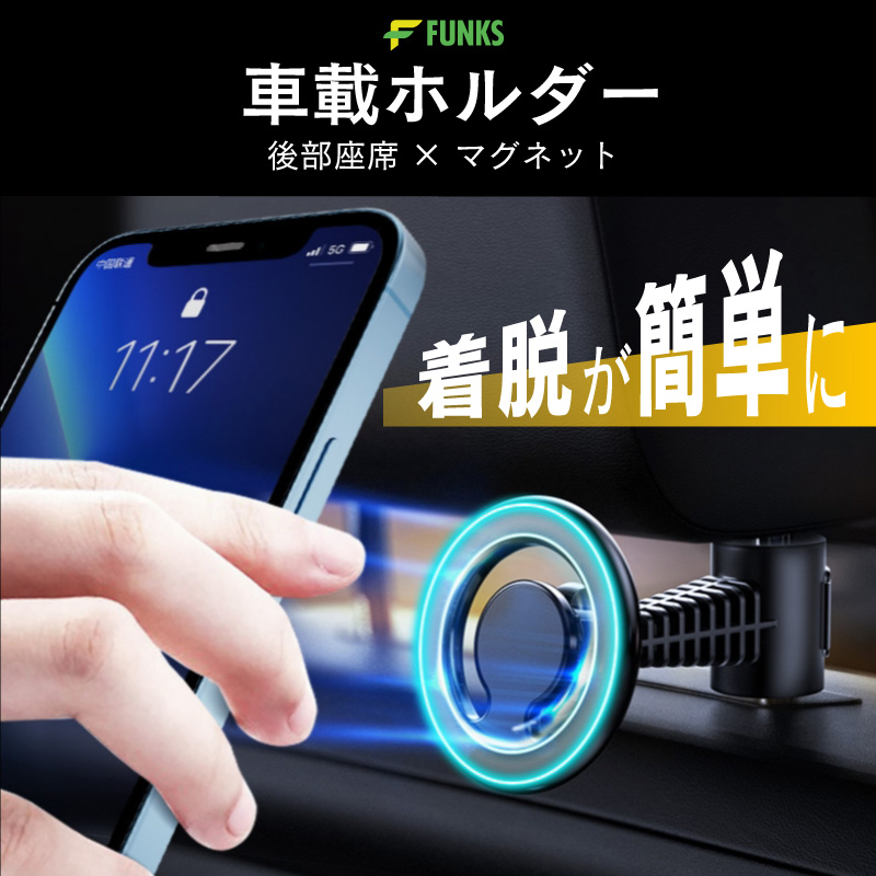 FUNKS 車載ホルダー MagSafe 後部座席 スマホホルダー タブレット iPad スマホ スマホホルダー マグネット マグセーフ ヘッドレスト