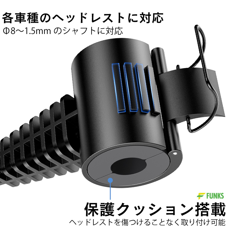 ※ヘッドレスト一体型の車には対応していません。