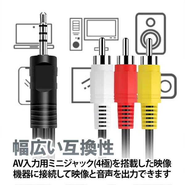 4極ミニプラグ → RCA 変換ケーブル 1.3m 赤白黄(音声2 映像1) 3.5mm→RCAオス互換 オーディオケーブル AV接続ケーブル テレビ モニター アンプ AUDIO352