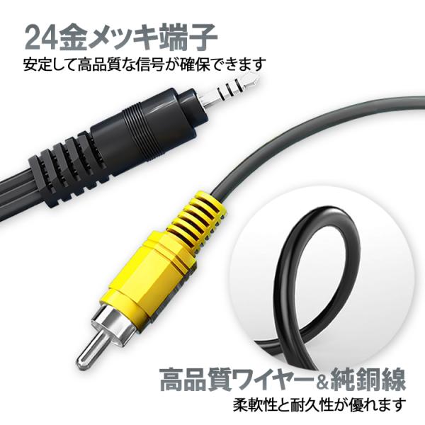 4極ミニプラグからRCA端子(音声2 映像1)に変換できるアダプタケーブル。