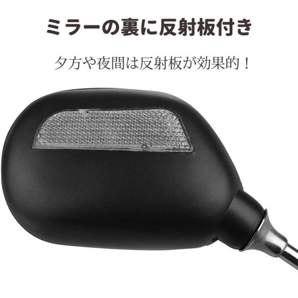 ミラーの裏に反射板付き夜間に対向車の注意を促すこともできます。