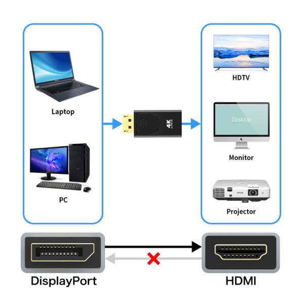 DisplayPort⇒HDMI 変換アダプタ 4K×2K対応 DPオス→HDMIメス PC画面の外部出力に ウルトラHD対応 ディスプレイポート変換コネクタ DPTOHD4K