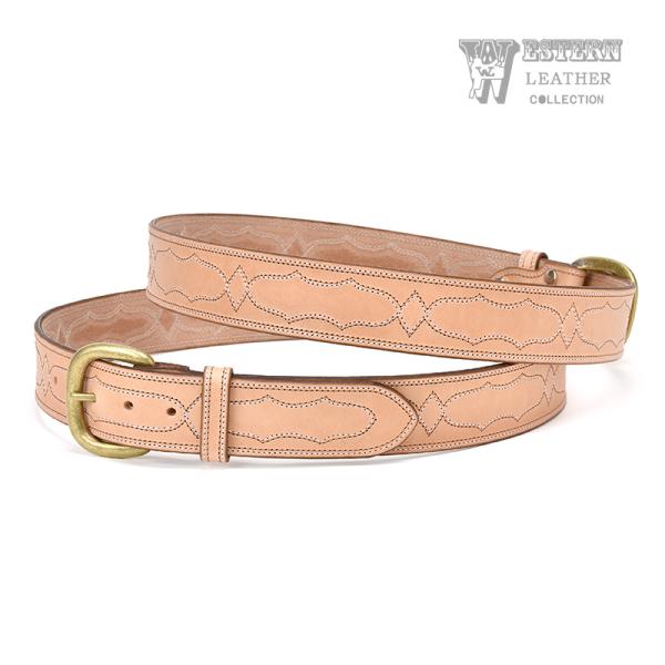 FUNNY公式ストア ウエスタンレザー 1-1/2 ステッチベルト 《タン》 ベルト 牛革 バックル