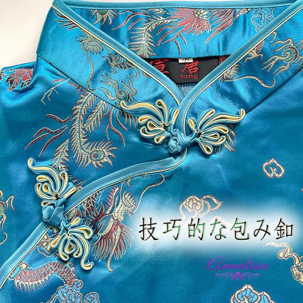 龍と鳳凰の刺繍を全面にあしらった高級感溢れるチャイナドレス。